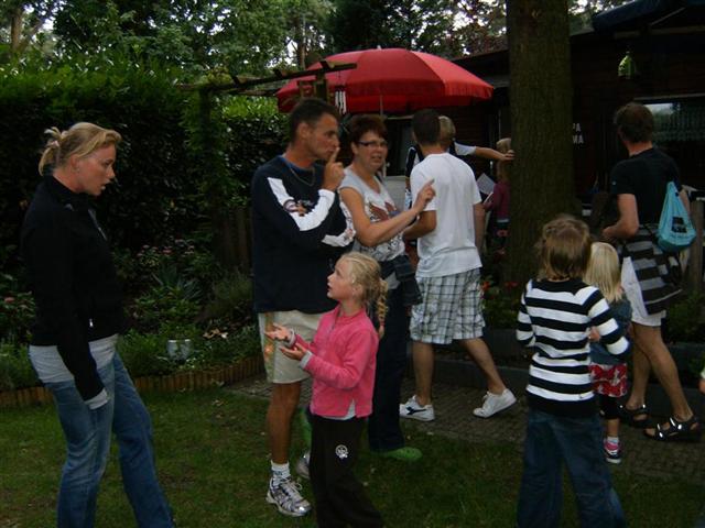 Soms echter, zoals gisteravond, wordt er een Vossenjacht georganiseerd. Tineke werd gevraagd of ze mee wilde doen als ‘post’ in de speurtocht. Nou dat wilde ze wel, als ze maar geen clown hoefde te zijn. Zo gezegd, zo gedaan: De Goede Fee was daar. De kinderen moesten een zin opschrijven en kregen een lolly.